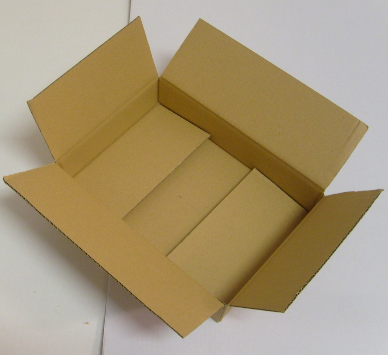Die Kartons werden flachliegend und ungefaltet angeliefert.Diese Faltschachteln werden mittels Klebeband oben und unten verschlossen.
